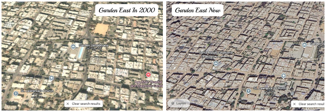 I think I found my answer about the issue in my observation, and conscious experience of living and monitoring my and my family’s wellbeing living in Garden East. The issue with the senior citizen walking on the road instead of footpath while going to Jammat Khana is because all the footpaths have been encroached upon by builders who have extended the building space to the pedestrian walk ways. The reason why the increase in the population of Garden is a cause of concern is because the presence of over 5 lakh residents in this area means we have the highest per sq km density in the entire city. Garden area has 125,705/km living in a space of 4sq km. No other area in the city has this high a population per sqkm.